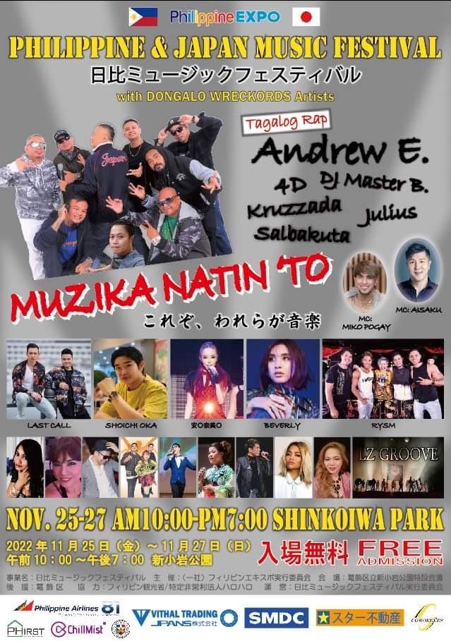 2022年11月25日~27日に、東京都葛飾区新小岩公園で、フィリピンの音楽イベント「日比ミュージックフェスティバル」が開催される。