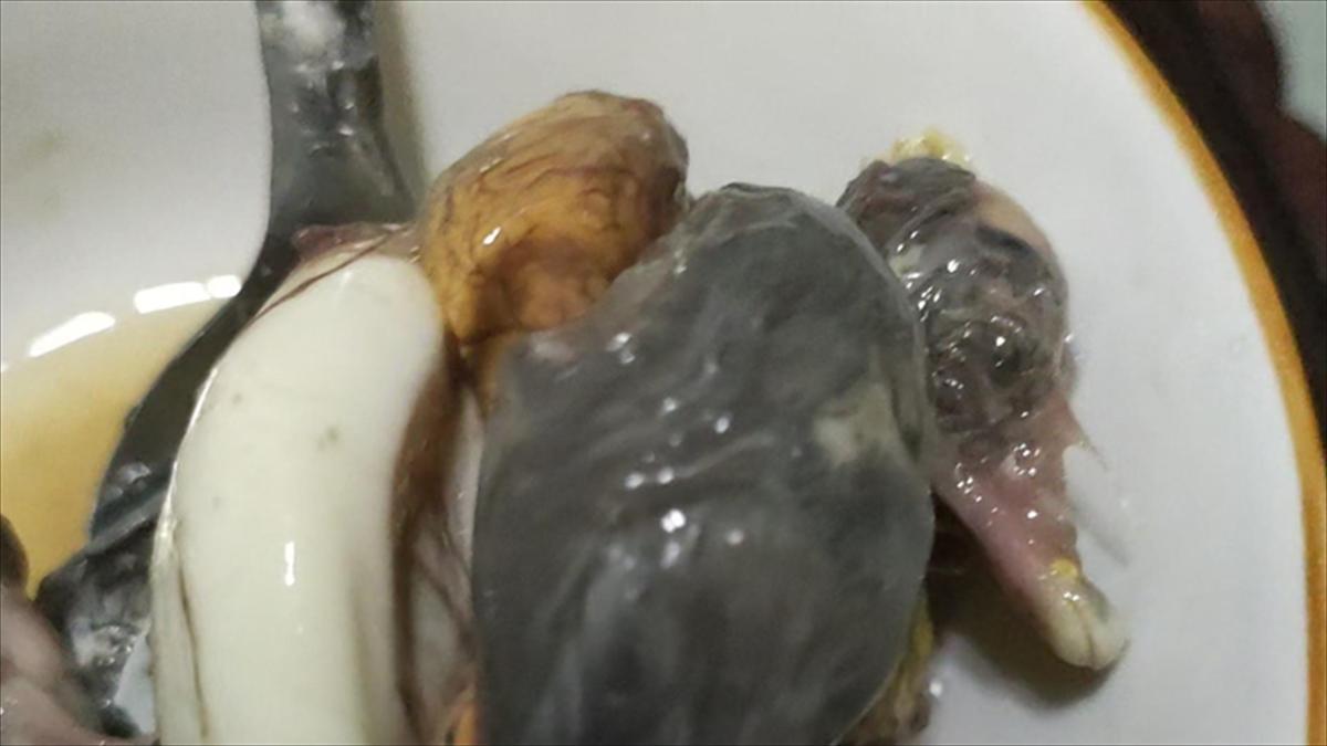 卵の殻の上の部分を割って中のスープを飲みます。味はあっさり普通の卵スープ。そして卵の中に塩とお酢をかけてスプーンで黄身部分から食べてみました。黄身は普通のゆで卵と一緒ですが、パサパサしておらずしっとりとした感じ。次に身の部分をスプーンで取り出すと、羽や足、クチバシまで見えるのです。最初は戸惑いましたが、娘たちに「はい食べて」と促されて一口食べてみるとクセも無く意外といけるかも。ただ食べた後も羽の食感や骨が口の中に残りました。