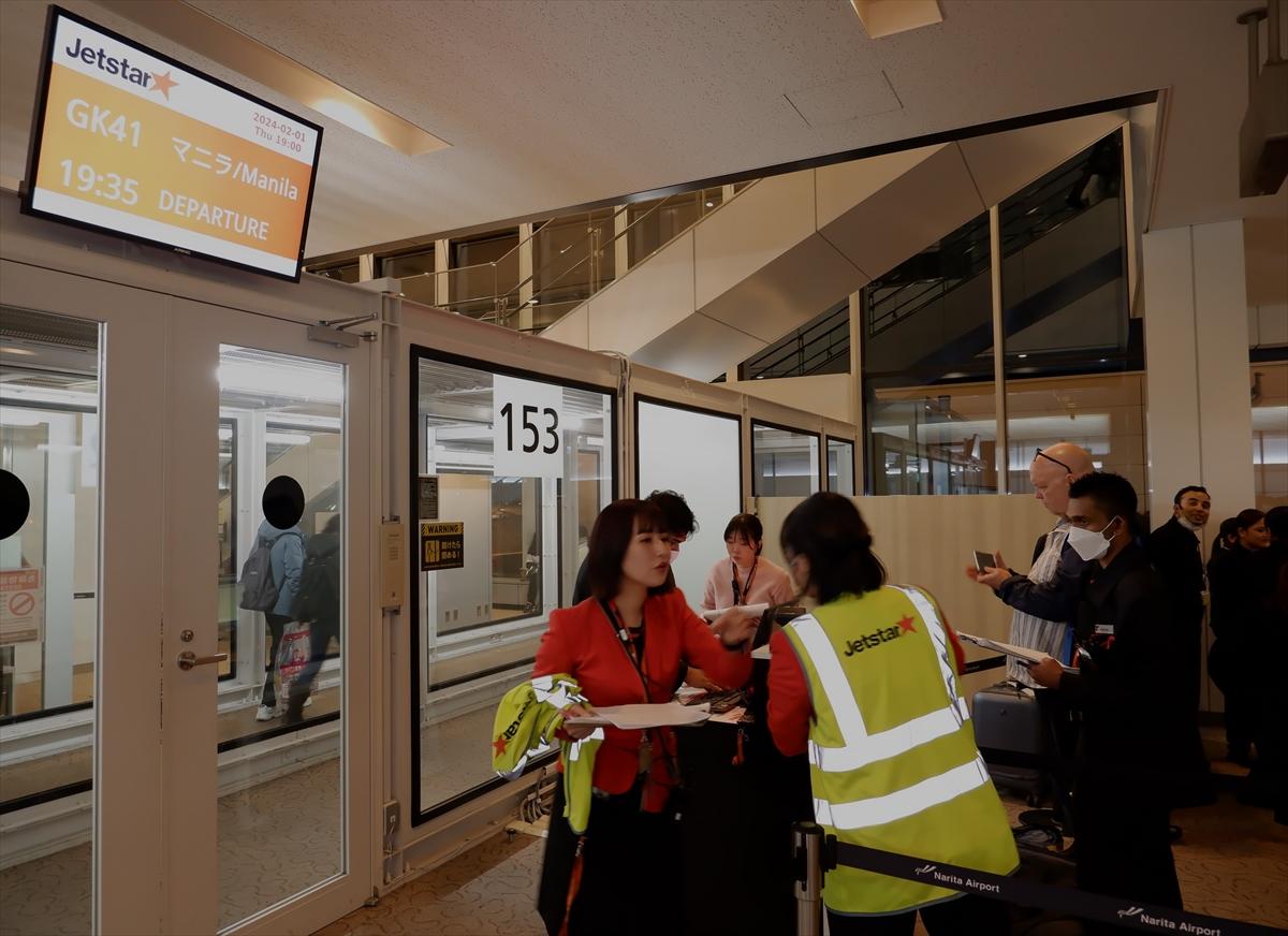 成田空港第3ターミナル、ジェットスター・ジャパンのマニラ行き搭乗口(2024年2月1日撮影)