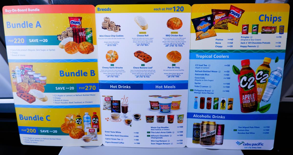 機内販売メニュー 超レア、ホワイトのセブ・パシフィック航空機LZ-FBK(2024年2月2日機内で)