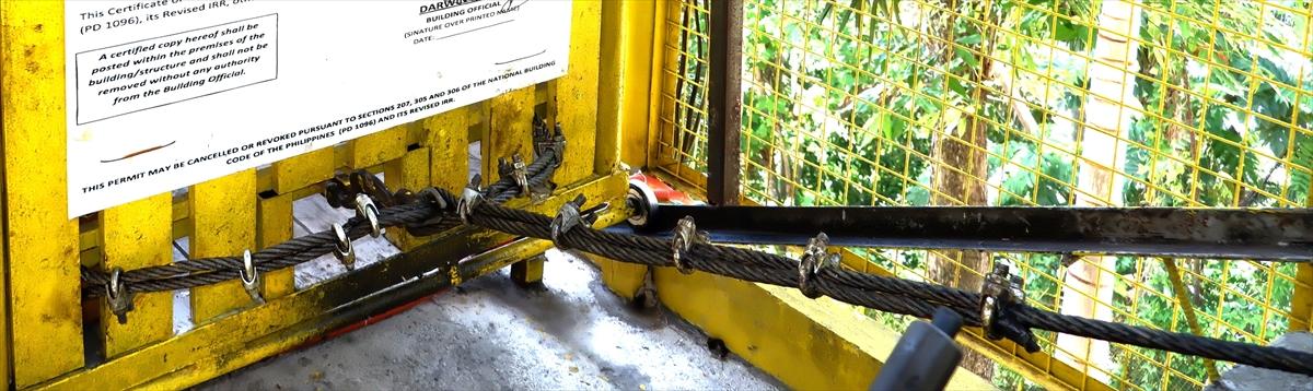 道路は丘の上にあるため、Canibad Secret Paradise Resortに向かうには、段差の高い階段で降りるか、専用簡易ケーブルカーを使用する(写真は4~7枚目)カゴはオーダーメイド製、カゴと動力を結ぶケーブルは油も塗られしっかりとメンテナンスされている様子。途中停留所が1カ所設けられている。最大4人乗り(太った人だと2人乗り)。