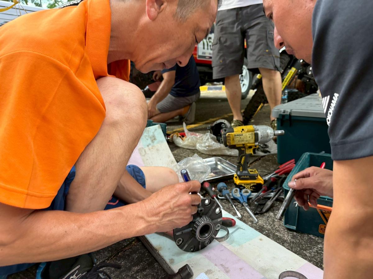 1台目はカオヤイからバンコクへ部品調達に向かい、2台目はプラーチーンブリーのホテルへ整備場所の確保のために移動。最後の1台は、部品調達を待つ間にカオヤイで保有部品を使ってできる限りの整備を行った後、プラーチーンブリーへ移動した。役割ごとに人数を割り振り、計画通りにメンテナンスを完遂した。各チームも車重整備を実施し、車両を完璧な状態に仕上げ、後半戦へと挑む準備が進んでいるようだ。