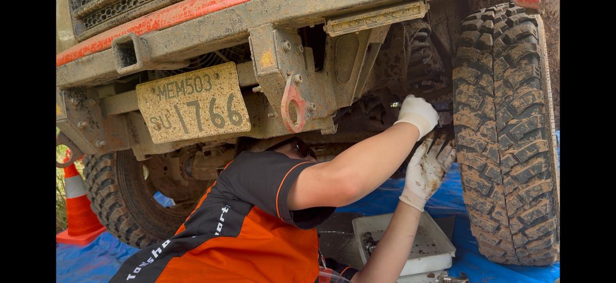 また、LEG終了後には必ず近隣の洗車場で車両を洗う。これは、泥などに隠れたクラックを整備中に見逃さないための重要な作業だ。さらに、現地の方々の協力を得て車両のコンディションを維持すると同時に、地域の方々との友好関係も築いている。LEG6はタイとカンボジア間の軍事情勢により、キャンセルになった。