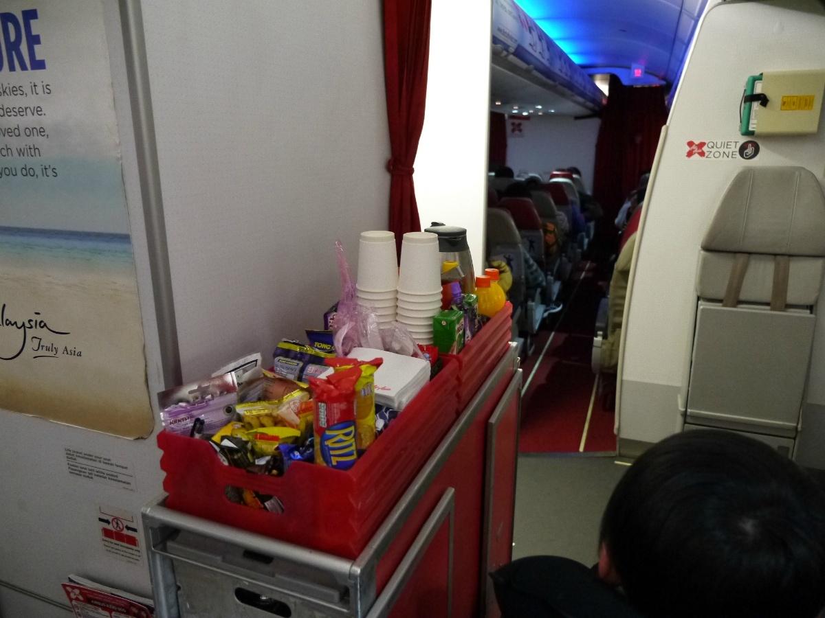 LCCでは、機内食は有料。カップ麺もワゴンでCAが販売している。