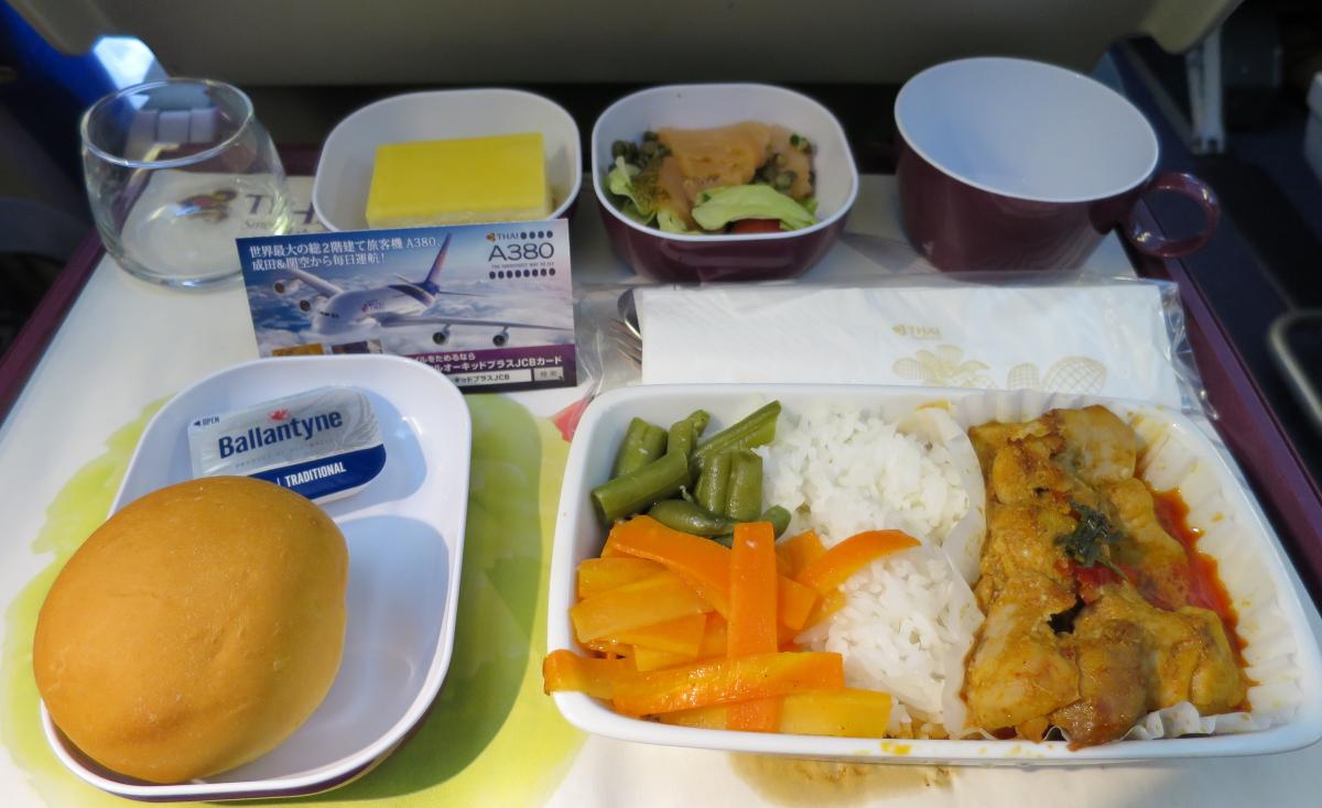 羽田発バンコク行き TGタイ国際航空・エコノミークラス機内食。