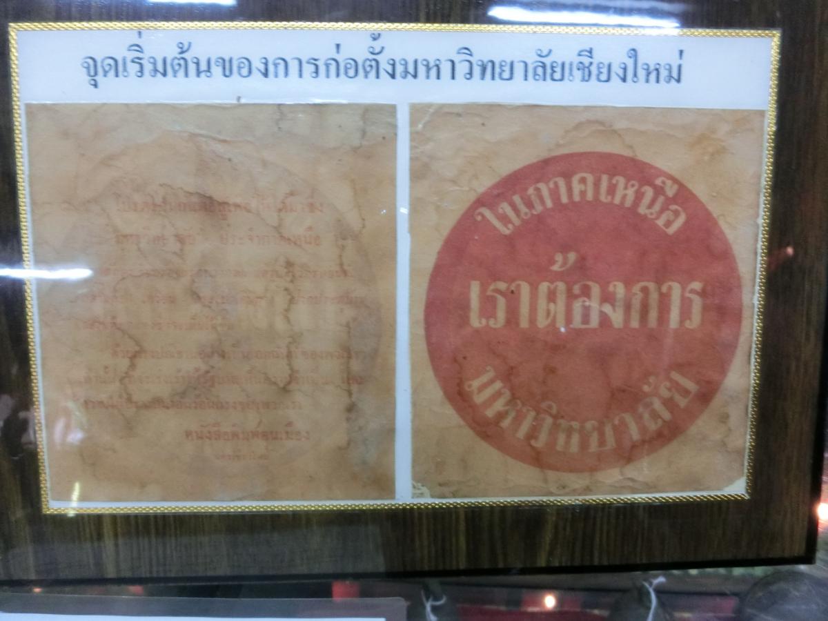 次にプロテスタントの教会に移動し、キリスト教、仏教、イスラム教の説明を受けました。少しびっくりしたのは、仏教のお坊さんや敬虔なイスラム教徒の方が十字架を背にする演壇で何の違和感もなく淡々と説明をしてくれたことです。続いてチェンマイの景観保護活動をしている中年の女性のお話を聞きました。チェンマイでは観光地化、都市化が進み、「ランナー文化」と呼ばれる北タイの景観、生活文化、そして貴重な遺跡が失われているそうです。それから「ゲート・ガラム」というお寺の博物館を見学。昔ながらの北タイの生活用具に交じって、麻薬の重さを計る道具、チェンマイ大学の設立運動当時の古いポスターなどがありました。