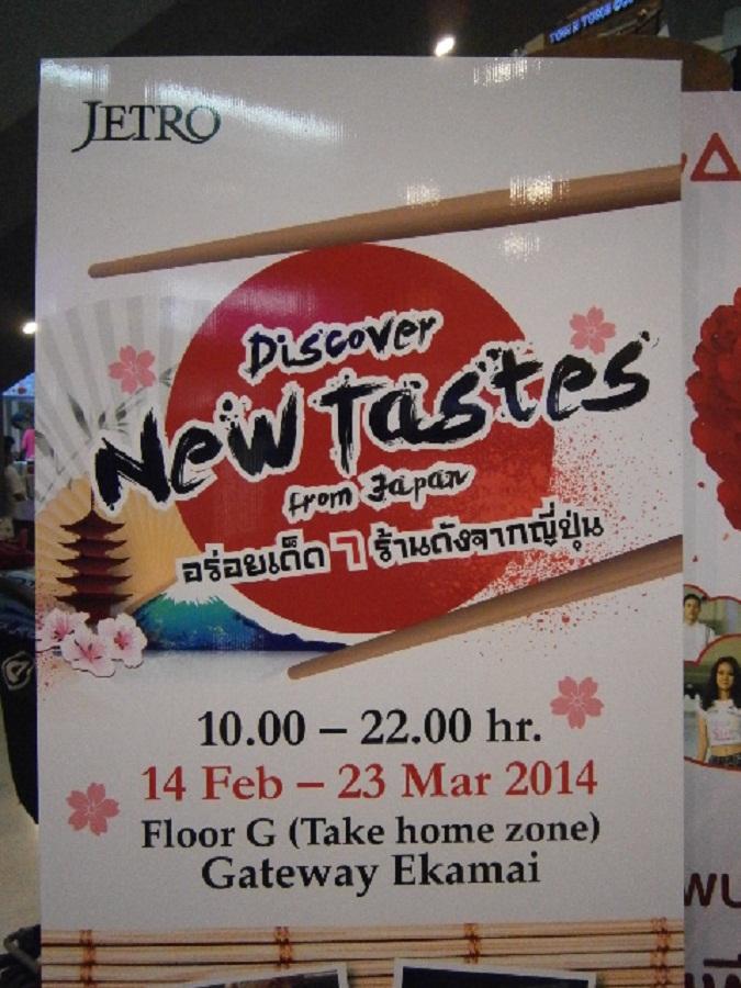 日本貿易振興機構(以下、ジェトロ)は、2014年2月14日からバンコクのエカマイにあるゲートウエイ・ショッピングモールで開催中のイベント「日本発、未知の味覚に触れよう」を支援している。
