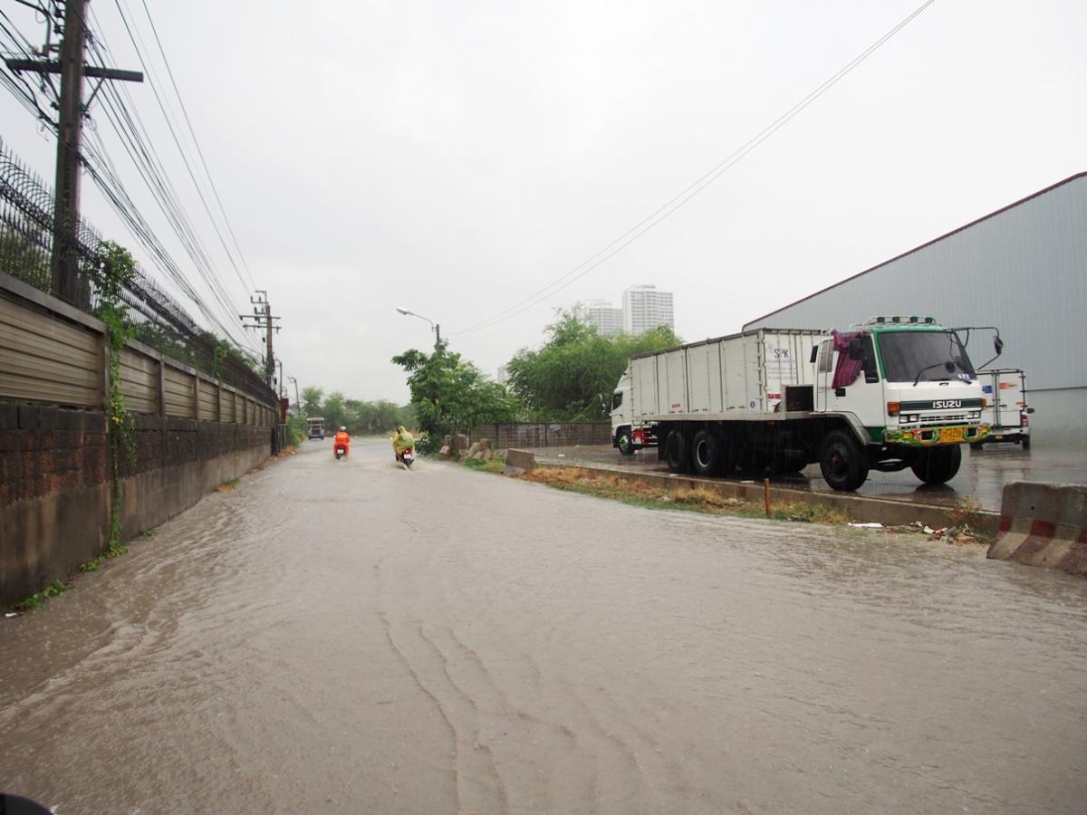 冠水している箇所も多かった。タイは水はけが悪い地域が多く、短時間の雨でもすぐに冠水する。