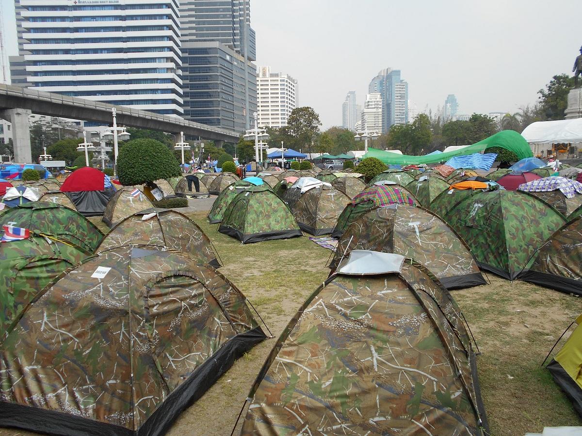 PDRCのリーダーであるステープ元副首相は、タクシン一族と関連のある企業に対して経済的な制裁を与えることを宣言。その標的のひとつとなったのがAIS。同社の携帯電話サービスの利用を止めるよう人々に呼びかけたところ、多くの人々がAISのショップに押しかけて、同社のSIMカードを返却した。