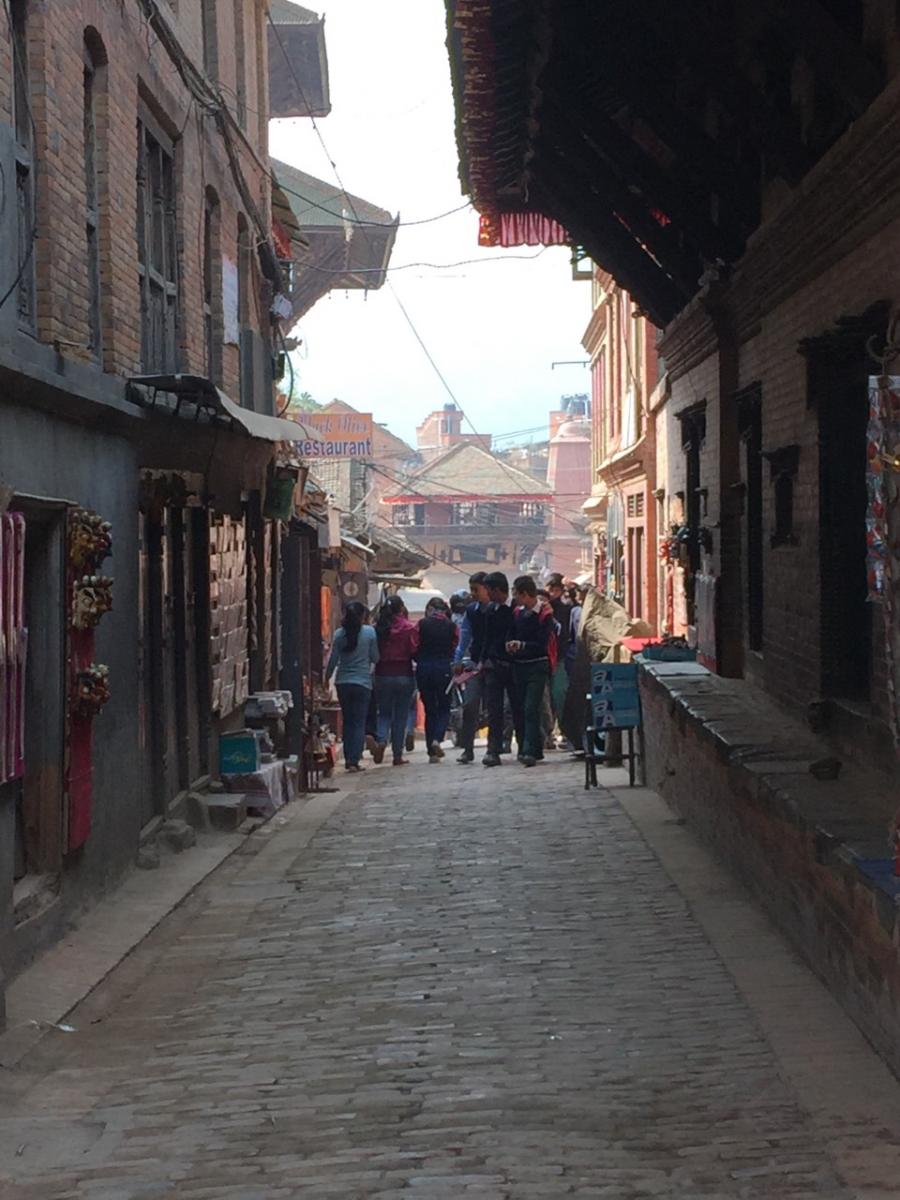 石畳の細い路地に木造家屋が並んでいた震災前のカトマンズ市内。耐震性の無いビルなども多くが崩壊している模様だ。(Mr.Oscar Nitta 提供)