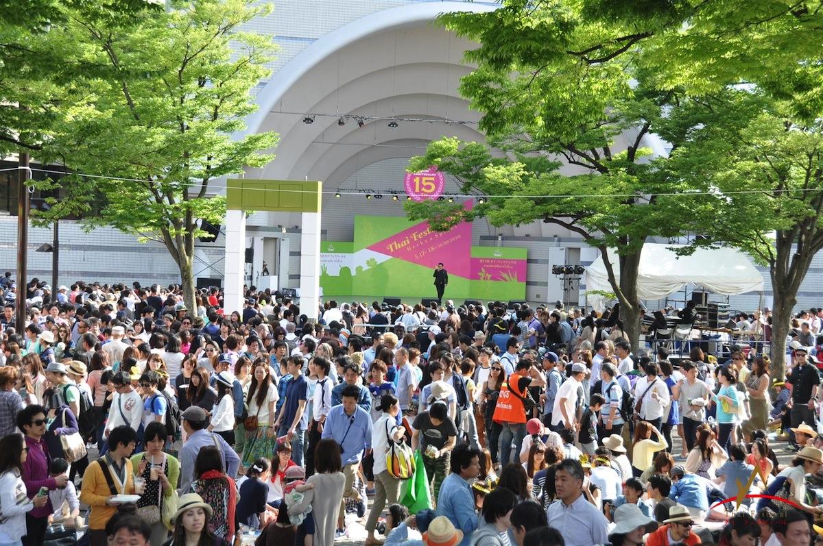 毎年、多くの入場者がニュースでにもなるタイフェスティバル。豪華ゲスト多数で早くも会場のパンクを心配する声も。2014年の様子(在東京タイ大使館 提供)