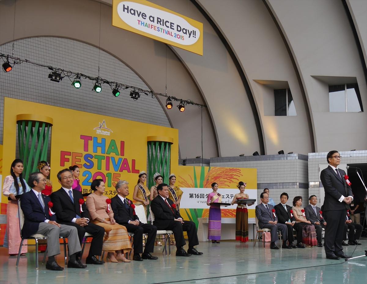 シハサック プアンゲッゲオ駐日タイ王国特命全権大使は「本年、タイフェスティバルは16回目を迎えます。当初は都内および近郊のタイ料理店に呼びかけ、フェスティバルに出店するレストランを集めるのにも苦労しました。今日ではタイ料理ブースを含め188ものブースが出店するまでになりました。
