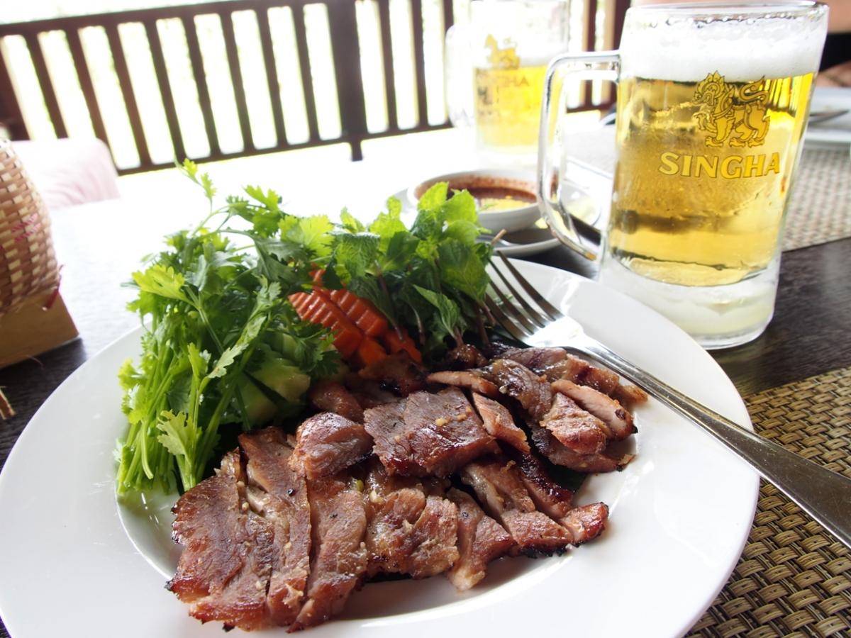 キンキンに冷えたシンハの生ビールと料理、そして席から見える景色が忘れられない体験になる。