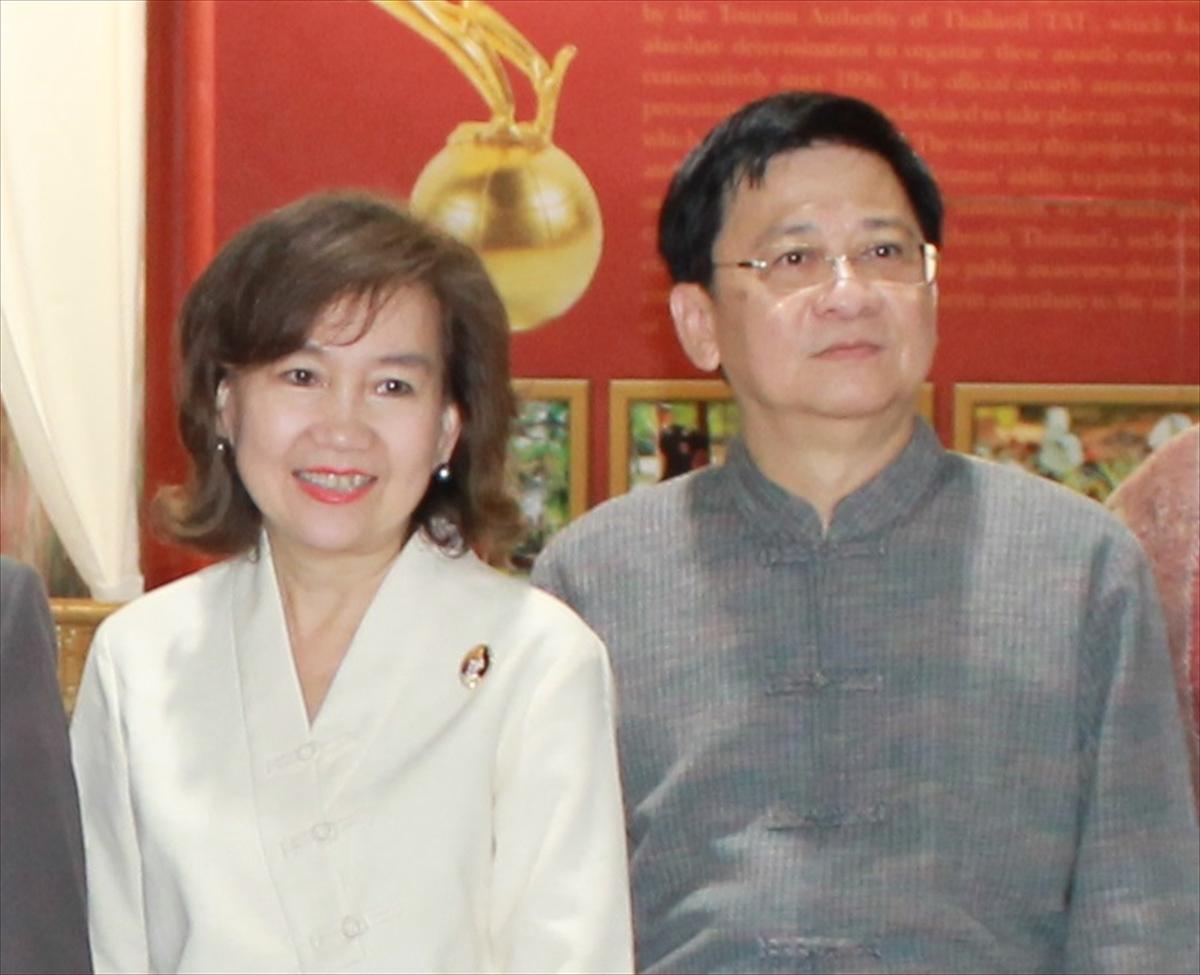 挨拶をしたのは、タイ国コープカーン・ワッタナワラーンクーン観光スポーツ大臣。パーティ会場に集まった500人ぐらいの人たちを歓迎し、TTM+の成功を祈った。加えて、歓迎会の前には、展示会の会場を見学。本格的には4日からだが、3日も行っていた米粉を使った菓子の実演についての説明にも、試食をしながら、興味深そうに耳を傾けていた。