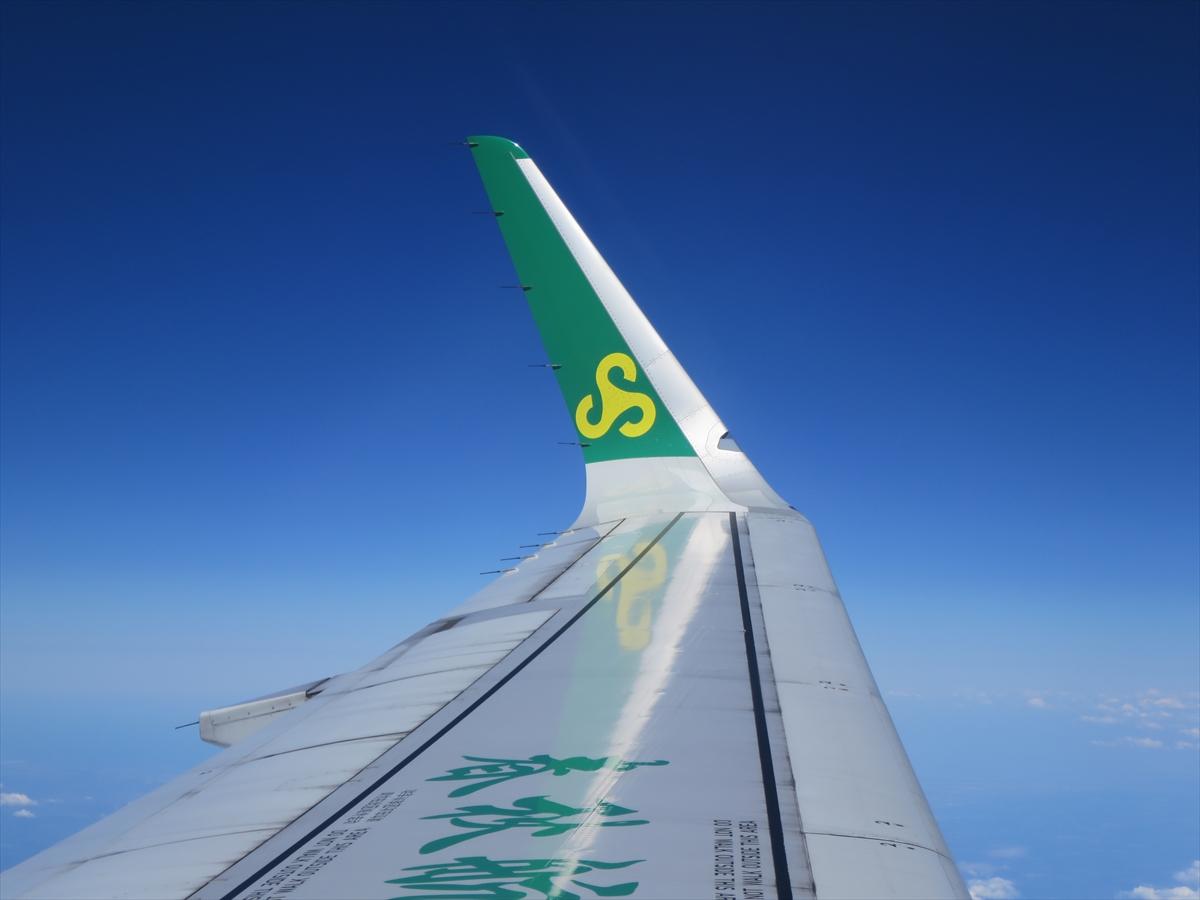 春秋航空エアバスA320型機の翼。