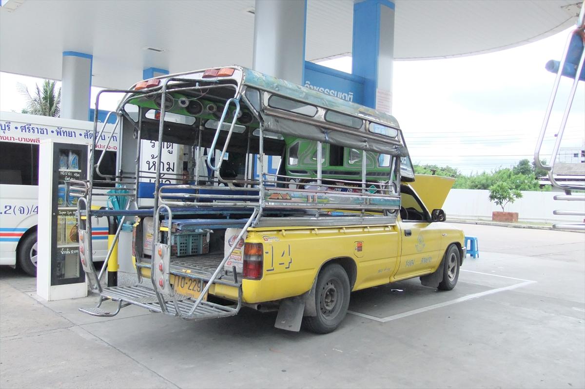 ソンテウは、小型のバンやトラックの荷台を改造して、小さな横長の椅子を取り付けたもの。乗合タクシー的に、タイ全土で広く普及している。行先やルートが表示されていないことも多く、観光地以外では旅行者には利用しにくい。地元の人の移動手段として定着している。