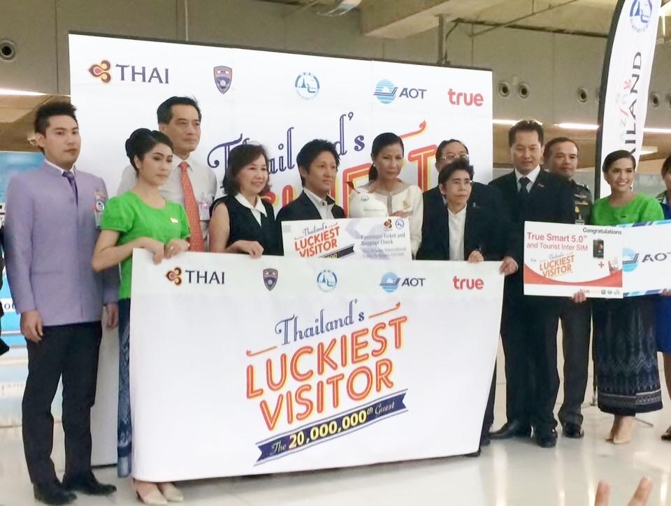 2015年8月26日、今年タイを訪れた記念すべき2000万人目は日本人だったとタイ国政府観光庁が発表した。幸運なオオモリショウジさんは、タイ国際航空の航空券や無料宿泊券など多くの記念品を手に入れた。