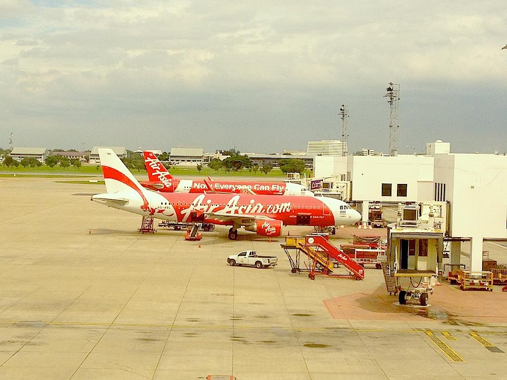 ドンムアン空港に駐機するエアーアジア機。追加投資でさらに路線拡充をはかる模様。