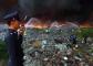 炎上するゴミ捨て場。消化作業に手間取っている。