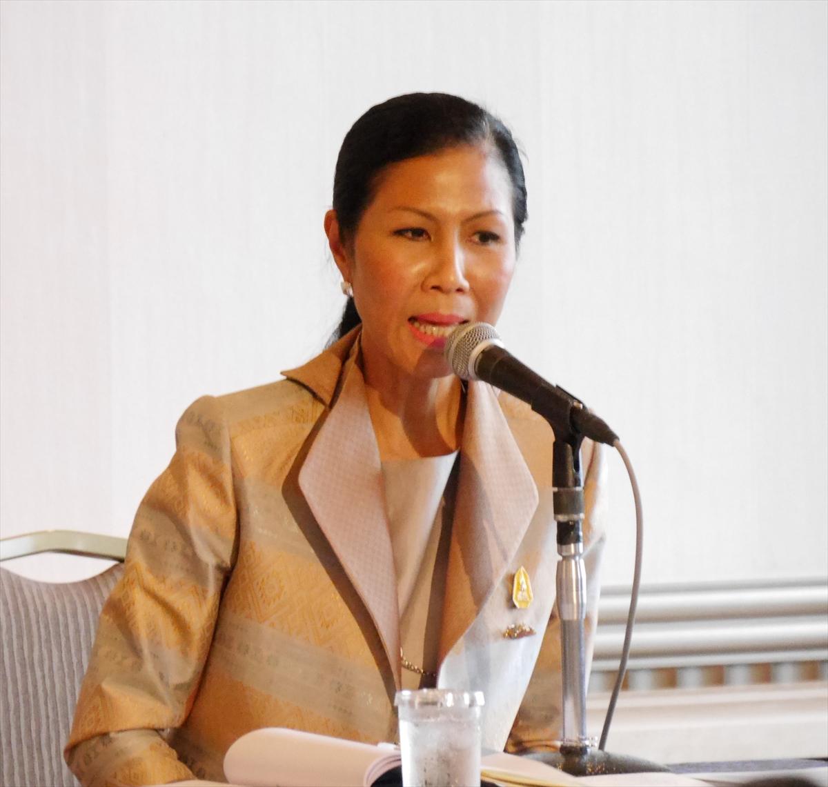 「タイはリラクゼーションやマッサージが充実しています。女性のお客様にぜひ目を向けていただきたいです。タイはGDPの10%が観光業で、今年は世界中から2880万人の観光客の来タイを目指しています。来タイ客で日本は4番目。クオリティの高いマーケットとして重要視しています。滞在日数は平均7.7日、リピーター率は70%です。ジョギング愛好家の方にも楽しんでもらえる世界遺産マラソンを新たに計画しています。タイらしさにふれる旅として、本当のタイを感じていただける様、12カ所を選びました。例えばチェンマイから南に1時間のランパーン。馬車で街を散策することが出来ます。いろいろな田舎に足を運んでいただきたいです」などと話した。