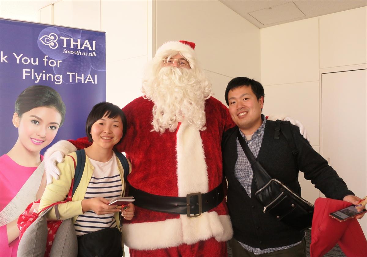 【タイ国際航空】羽田空港で搭乗客にサンタクロースがクッキーをプレゼント