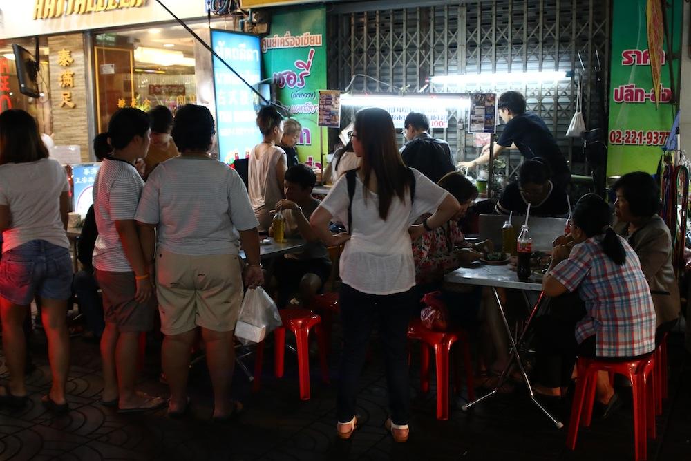 ヤワラーエリアの中央を走るヤワラー通りからソイテキサスという小道に入ると大勢の人々が取り囲んでいる小さな屋台が営業している。周囲を囲んでいるのは空席を待っている人たちだ。