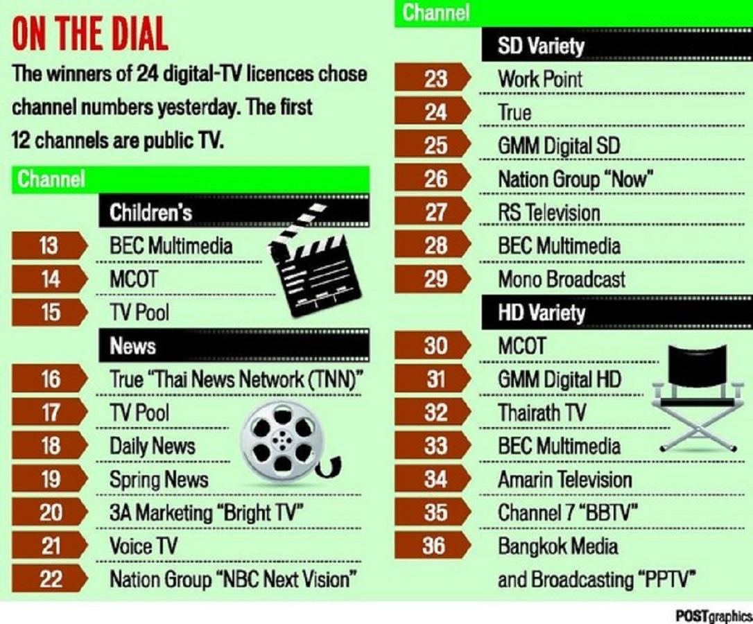 タイ放送協会は、4月1日の本放送開始後すぐに、チャンネルの設定ができないなどのクレームが多数寄せられたことを明かした。これまでタイのアナログ放送は6局だけであった。デジタルへの移行で24局が無料で放送される。これを目玉として開始されたデジタル放送だが、許認可の都合でいくつかの局が間に合わず、すべてのチャンネルがそろうのは今月24日になる。また、これまでのアナログ放送は2020年まで続けられる。