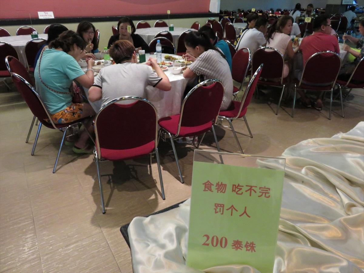 また、タイの歴史と文化を紹介するエンターティメント「アランカーン」のレストランでは、中国人客の食べ残しが常識の域をはるかに超えるケースが多かったため、「食べ残しには200バーツ(約600円)の罰金。」の表記を、入口やテーブル周辺に掲示して注意喚起を促すほか、料理は、取りすぎを防ぐため、料理ごとにトングを持ったスタッフを配置するなどの対策を講じている。