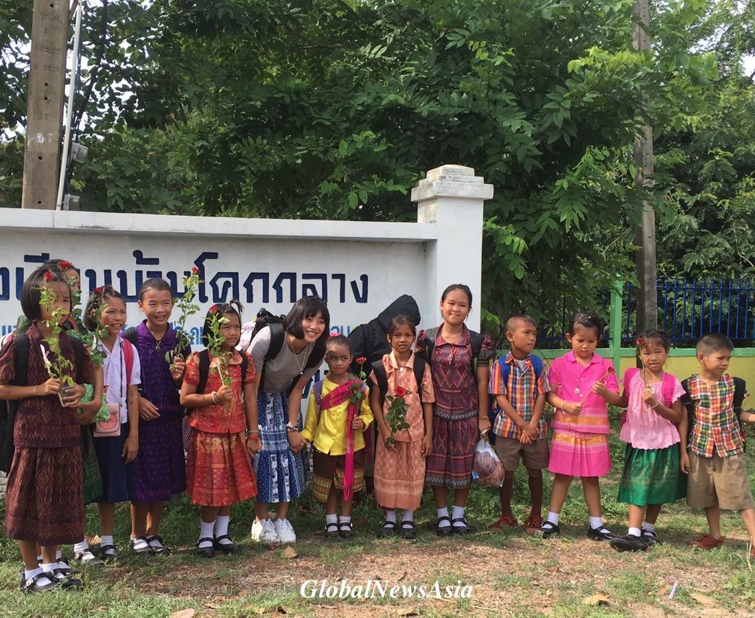 【タイ】日本人女優が田舎の学校で子ども達と交流