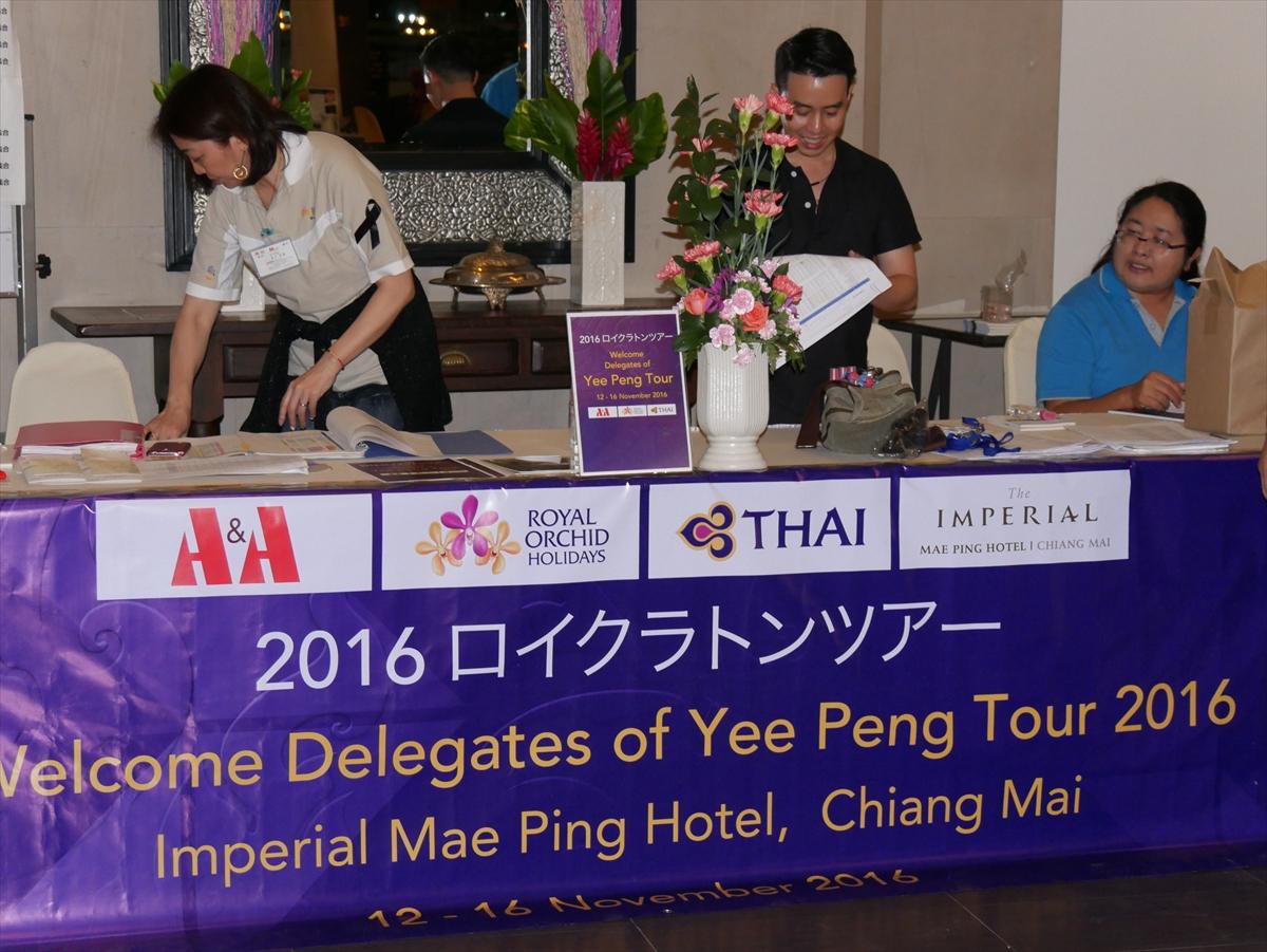 タイ国際航空のツアーブランド・ロイヤル オーキッド ホリディズ(エーアンドエー取り扱い)インペリアル メーピン ホテルの特設ツアーデスク(2016年11月13日)