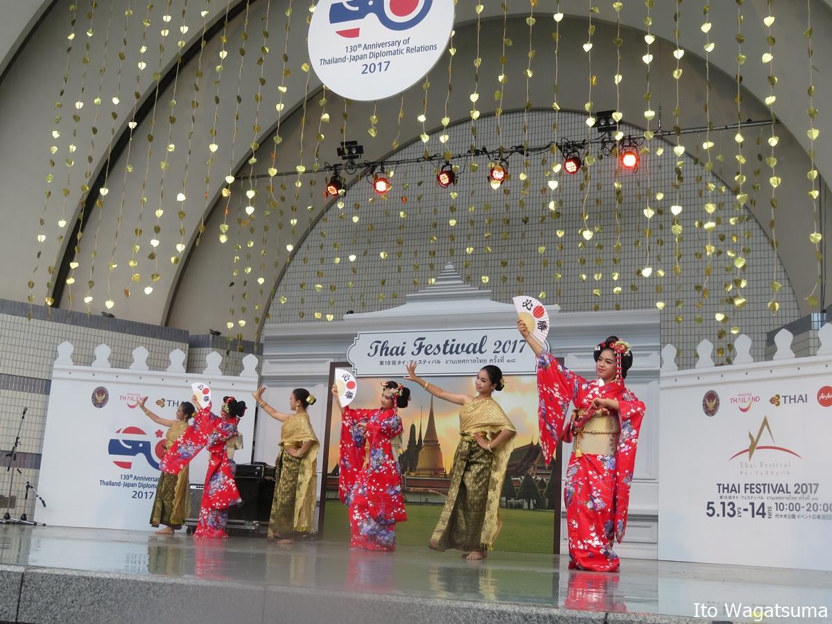 日本の伝統衣装である着物とタイの民族衣装であるシワーライを着たタイラット舞踊学校の女生徒が踊り、着物とタイの男性用民族衣装であるスア・プララーチャターンを着た男子生徒が両国の国旗を交えて踊るなど、日本とタイの友好を表現をした。