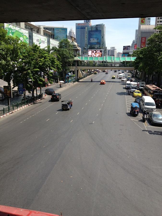 セントラルワールド前。普段より交通量は断然少ない(撮影:そむちゃい吉田)
