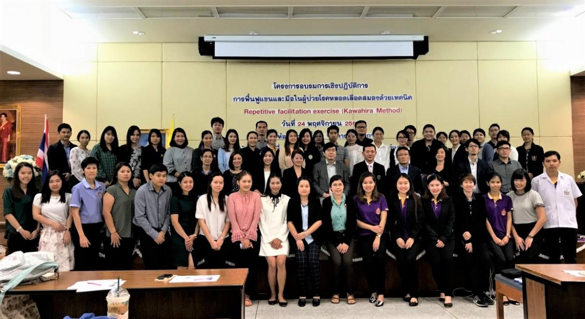 2017年11月24日、シリントン国立医療リハビリテーションセンターで、「川平法(促通反復療法)」の研修会が開催され、タイ人作業療法士を中心に約50人の参加者が熱心に受講した。