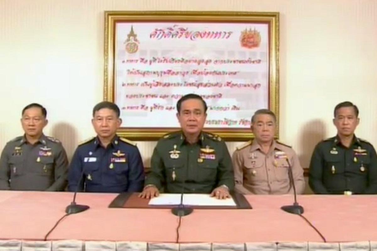 2014年5月22日午後、タイの軍司令官の仲介による政府と反政府派などを含む関係機関の会合による調停が不成立に終わったことを受け、それまで治安維持に留まるとしていたタイ国軍が、政権を掌握することをテレビ放送で宣言した。