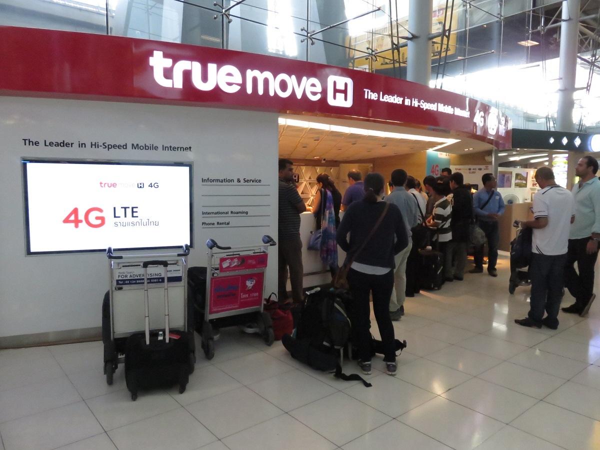 空港に到着し、スマートフォン用SIMカードを購入する観光客【5月22日撮影】