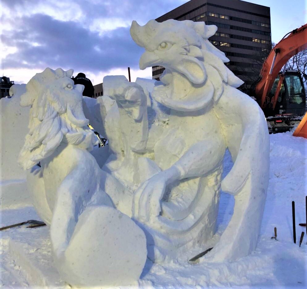 さっぽろ雪まつり・チームタイランドの雪像が優勝! 「ガイチョン(闘鶏)」