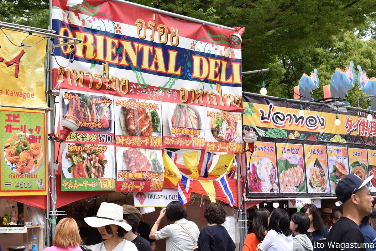 メインステージでのタイの人気アーティストや伝統的な舞踊などなどが楽しめる。しかし、タイフェスの魅力はステージだけではない。ずらりと並ぶ130を超えるタイ料理や果物、雑貨のブースも大きな魅力。まさに東京がタイになる場所だ。