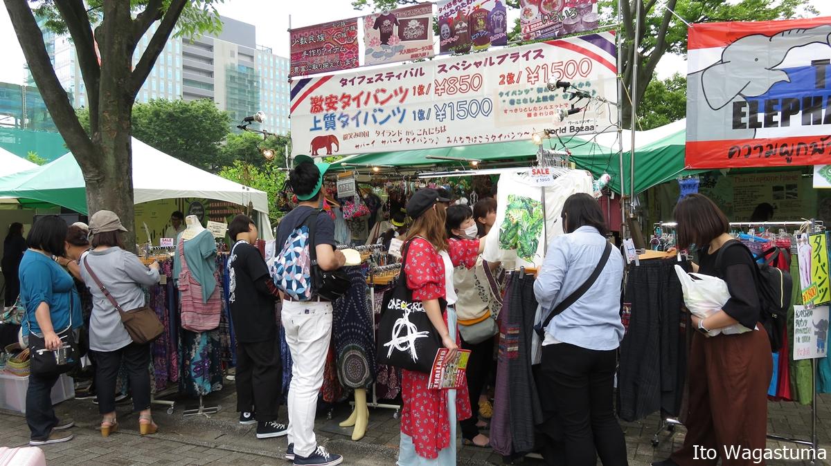 メインステージでのタイの人気アーティストや伝統的な舞踊などなどが楽しめる。しかし、タイフェスの魅力はステージだけではない。ずらりと並ぶ130を超えるタイ料理や果物、雑貨のブースも大きな魅力。まさに東京がタイになる場所だ。