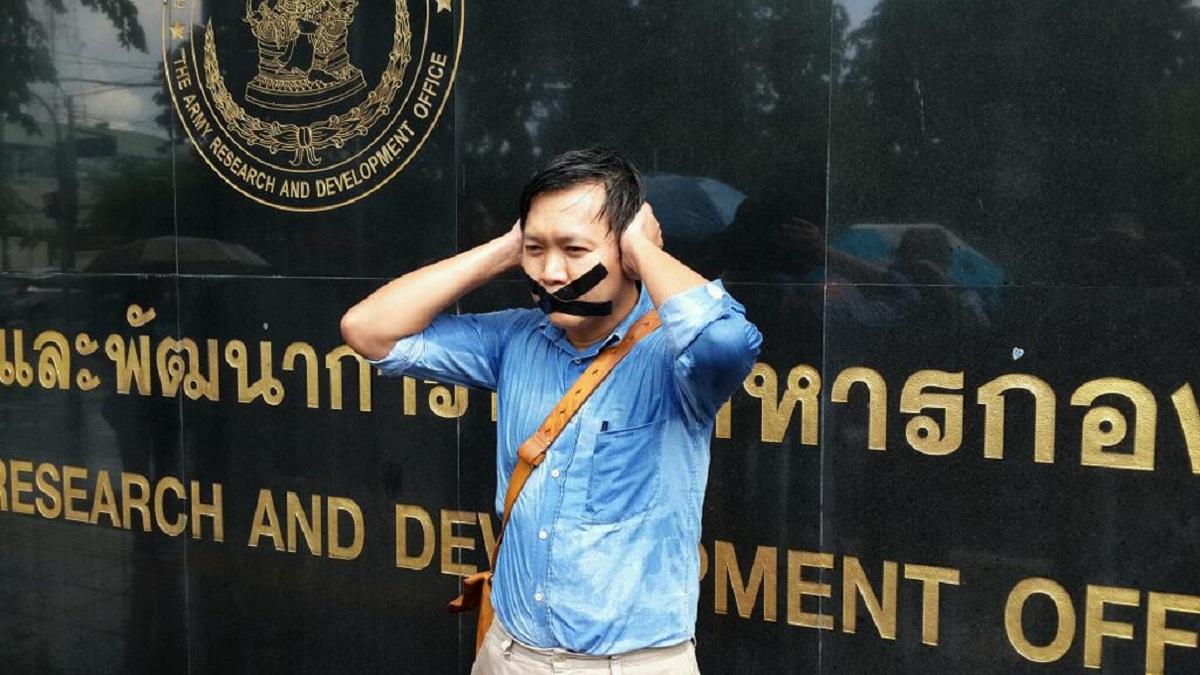 軍政の報道管制、メディア規制に抗議するタイ人ジャーナリスト。