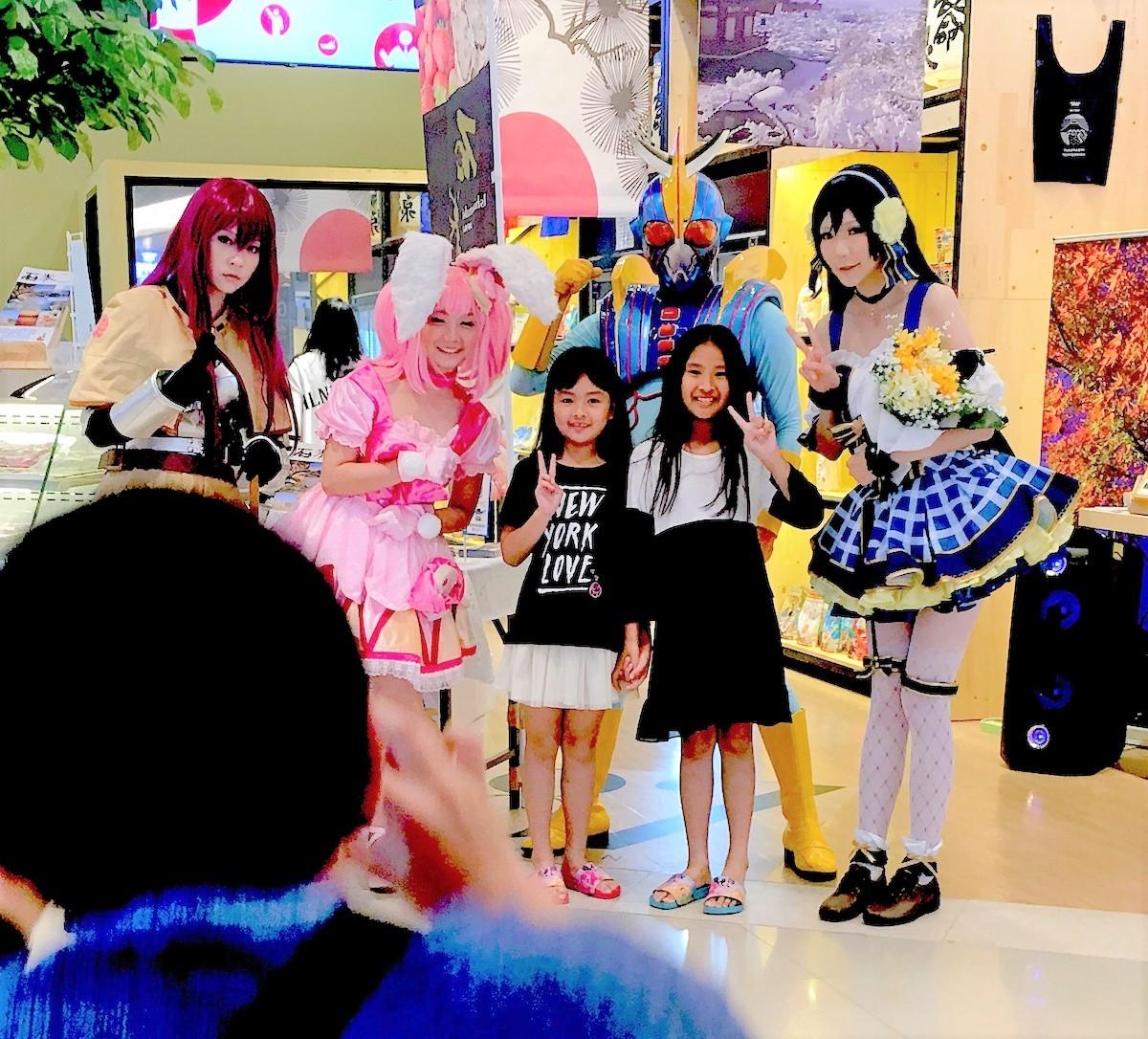 ちびっ子たちも応援に来たコスプレーヤーたちと一緒に記念撮影