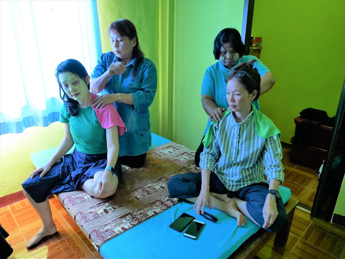 民間療法の医療的な行為として受け継がれてきたのがシャンマッサージ。マッサージ終了後は、血行が改善され体が軽くなる。タイヤイ族の昔ながらの文化・風習が色濃く残された「バーン・ムアンポン」(2018年11月22日・撮影)