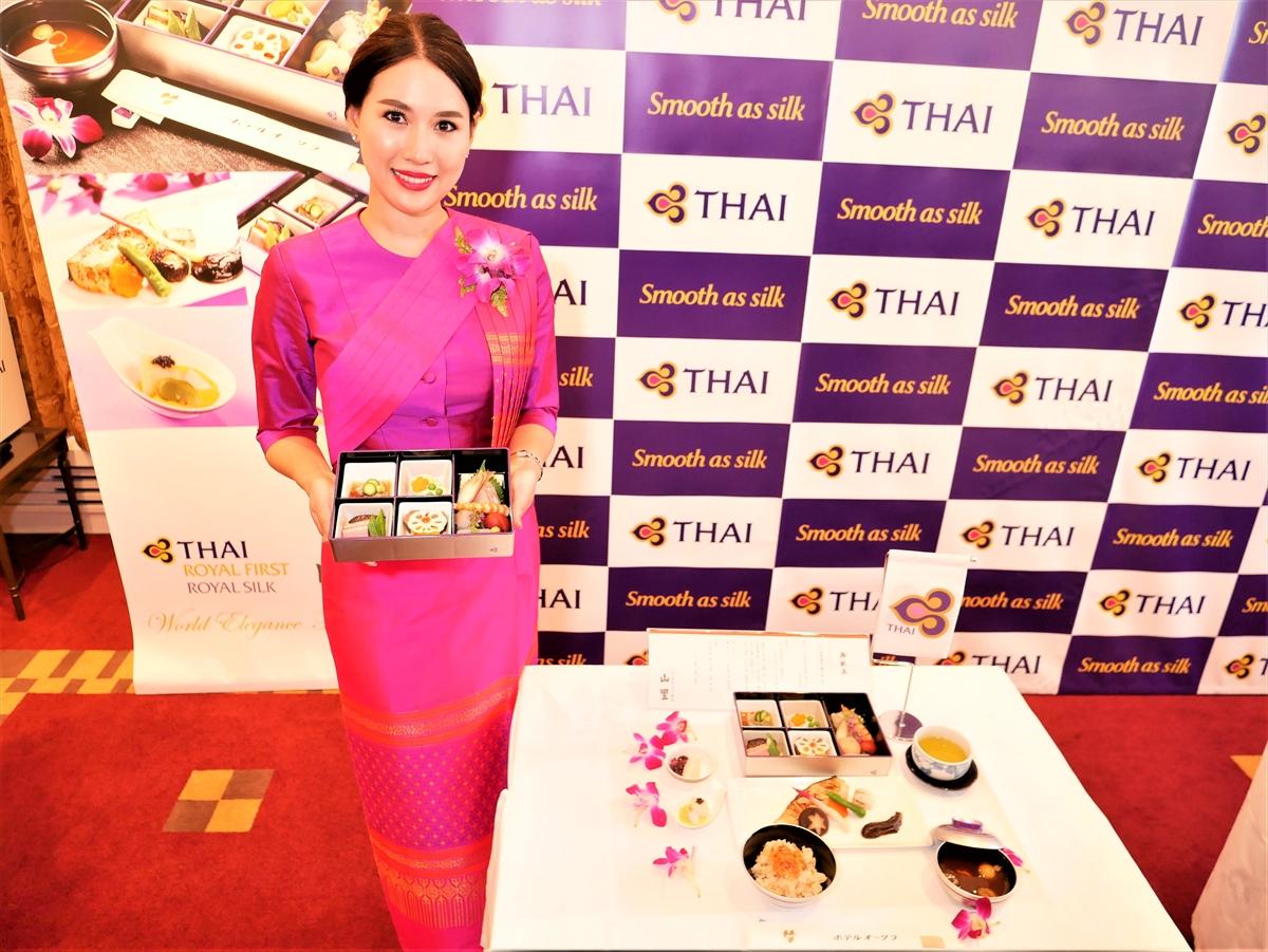 【タイ国際航空】ノン・カリンタ副社長来日、ホテルオークラ東京「山里」監修の機内食発表会