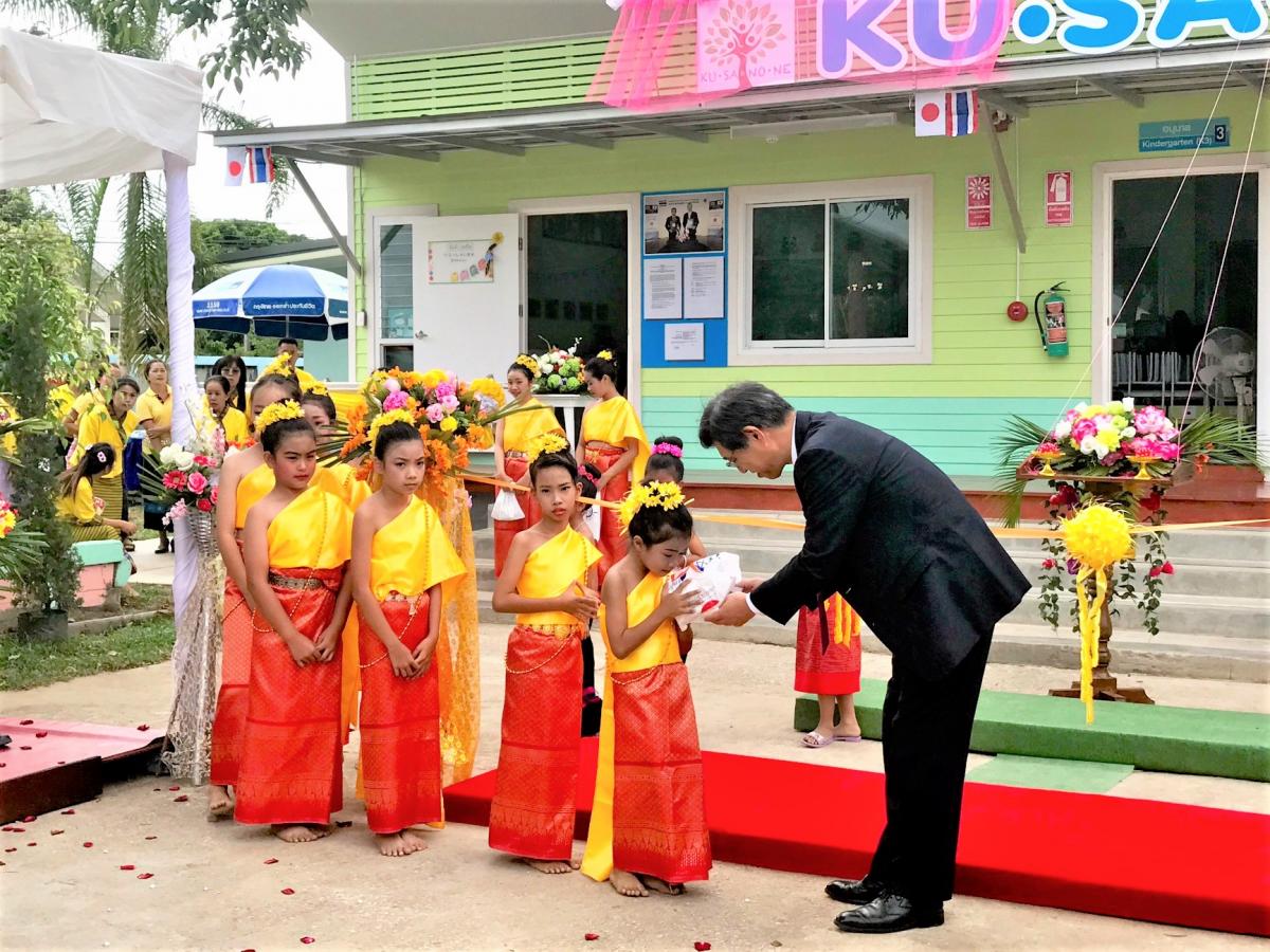 これに対し日本政府は、アヌバーンメーラオ校の耐震校舎建設にかかる総額7,303,000バーツ(約22,780,000円)の支援を行い、このたび耐震の幼稚園棟(4教室と食堂、トイレを含む)が完成した。今回の支援で、アヌバーンメーラオ校の園児、児童が安全で快適な環境で学べるとともに、この校舎がタイにおける最初の耐震構造モデルとしても広く役立つことが期待される。