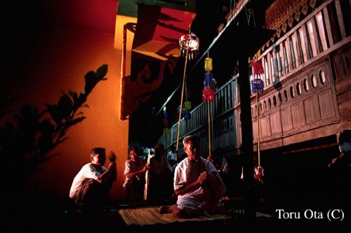 夜も明けやらぬ午前4時。村の長が祈りを捧げ、降霊の儀式を執り行なう。ピーターコン祭りはこうして静かに始まる(写真:太田亨カメラマン提供)。