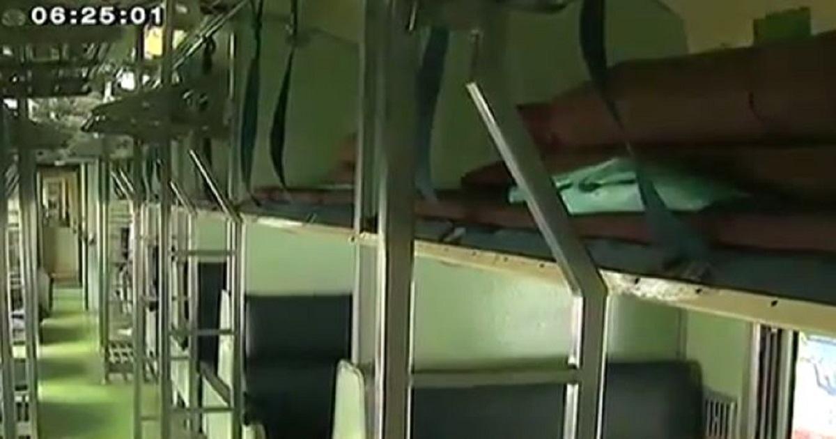 タイ国鉄2等寝台車両の内部。