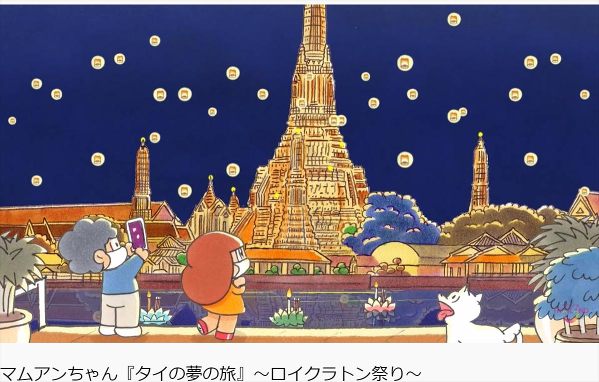 2021年11月4日、タイ国政府観光庁は、タイ人作家ウィスット・ポンニミットさんの大人気キャラクター「マムアンちゃん」動画第4弾『タイの夢の旅~ロイクラトン祭り~編』(45秒の短編アニメーション)をYouTubeで公開した。