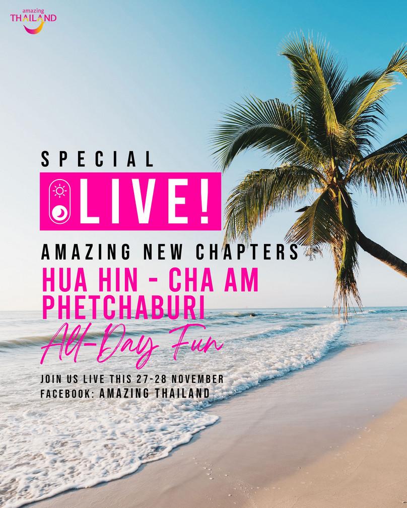 2021年11月27日~28日、タイ国政府観光庁は、ホアヒン、チャアム(ペッチャブリー)からFacebookで、ライブ配信を行う。