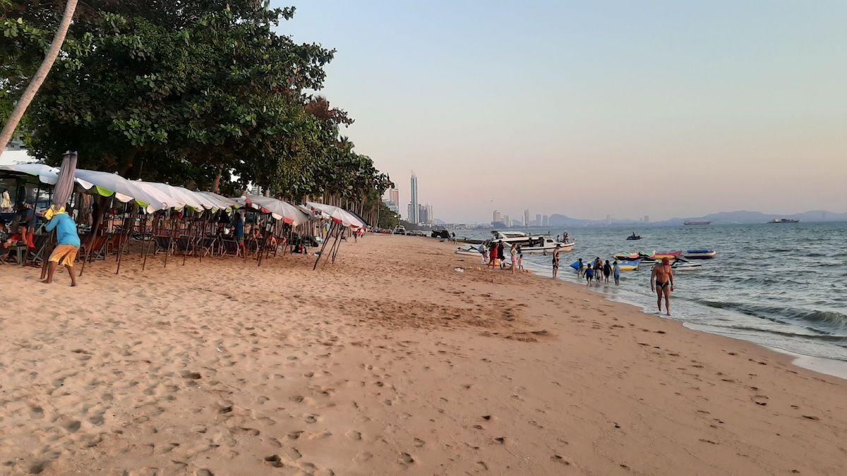 ジョムティエンビーチは最近、砂浜の拡張工事が行われてこれまで幅5メートルだった砂浜が51メートルに拡張され、観光客に好評を博している。それに伴い多くの屋台などが出店。さらに土地使用料を支払うことなくビーチに座席を作るレストランも出現して、これまで静かな場所だったジョムティエンビーチが騒がしく変化していた。