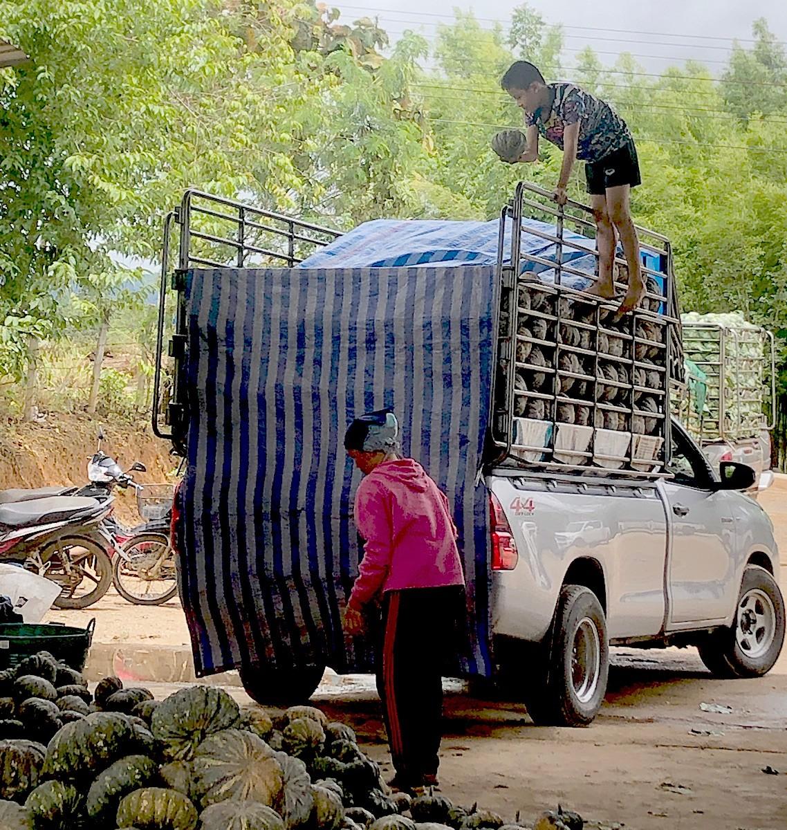 作物の積み下ろしには子ども達も手伝っていた(そむちゃい吉田撮影)