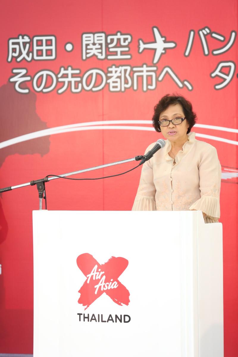 タイ・エアアジアX CEO のナダ・ブラナシリ氏は、就航について、「バンコクから二つの重要な都市、東京と大阪への就航を同時に迎えられる本日は弊社にとって重要な日であり、大変うれしく思っています。オフシーズンであるにもかかわらず、我々のフライトの予約状況は好調であり、すでにお客様から好意的なフィードバックをいただいております。タイ・エアアジアX の就航により、日本とタイがより身近となり多くの旅行者が気軽に行き来できるようになると信じています。そして、日本のお客様に対する私たちの強い思いを、2015 年3月からの増便という形で表わしました。東京(成田)からバンコク(ドンムアン)空港間は現在の1 日1 便から2 便へ、大阪(関空)からバンコク(ドンムアン)までは 5 便/週から1 日1 便へと増やしていく予定です。タイはバンコクだけではありません。タイには日本の皆さまに知っていただきたい多くの素敵な場所があります。バンコク(ドンムアン)を入り口として、北のチェンマイやチェンライ、すでに日本の皆さまにも人気のプーケットやクラビにもタイ・エアアジアX で簡単に遊びに行くことができます。年々観光客が増えている南の都市、ハートヤイもぜひ体験していただきたい街の一つです。弊社のFLY-THRU サービスで知らない街へのアクセスも簡単です。」と話した。